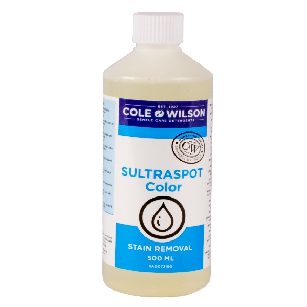 Sultraspot Color — це кислотний засіб делікатної  дії для обробки плям, спеціально розроблений для видалення tannin (танінних) і пігментних плям у процесі попередньої обробки або після прання. Універсальний продукт для сухого чищення, аквачистки, прання – розроблений компанією Christeyns