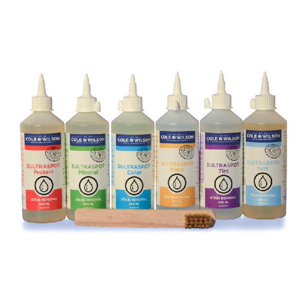 Sultraspot Kit – це готовий комплект для видалення широкого спектру плям із текстильних виробів, що включає 6 різних плямовивідників по 500 мл кожен. В комплект також входять спеціальна щітка та лопатка — для зручного нанесення.